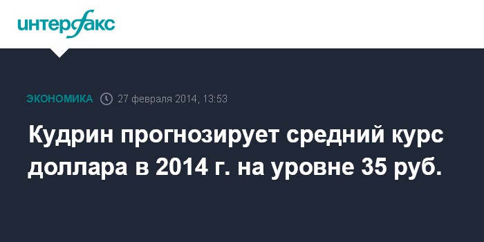 Кудрин прогнозирует средний курс доллара в 2014 г. на уровне 35 руб.