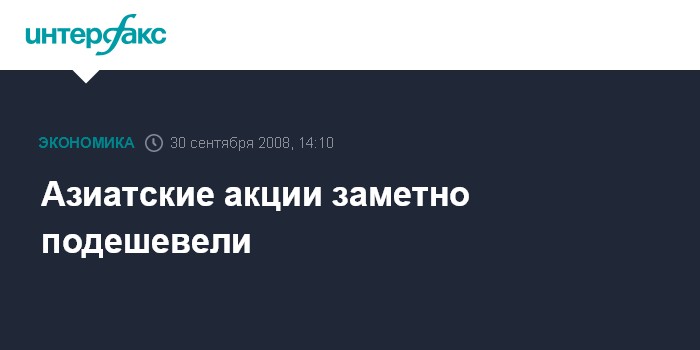 Москва. 30 сентября. INTERFAX.RU - Азиатские фондовые индексы упали во вторник на новостях о провале в Конгрессе США "плана спасения" американской финансовой системы, сообщило агентство Bloomberg.