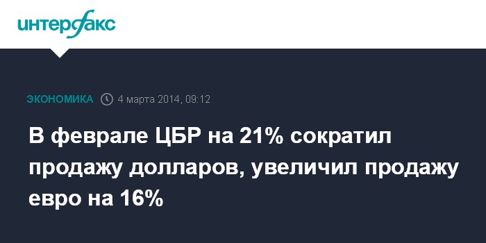 В феврале ЦБР на 21% сократил продажу долларов, увеличил продажу евро на 16%