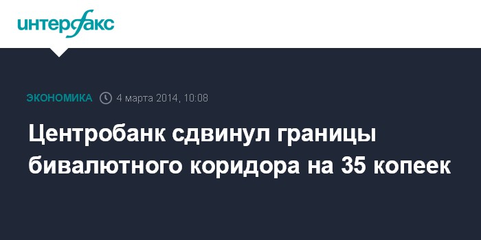 Москва. 4 марта. INTERFAX.RU - Центробанк сдвинул границы бивалютного коридора вверх сразу 35 на копеек. На 3 марта границы коридора составили 35,75-42,75 рубля, говорится в материалах ЦБ, размещенных на его сайте.