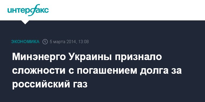 Минэнерго Украины признало сложности с погашением долга за российский газ