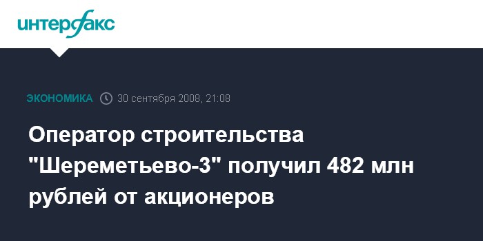 Оператор строительства "Шереметьево-3" получил 482 млн рублей от акционеров