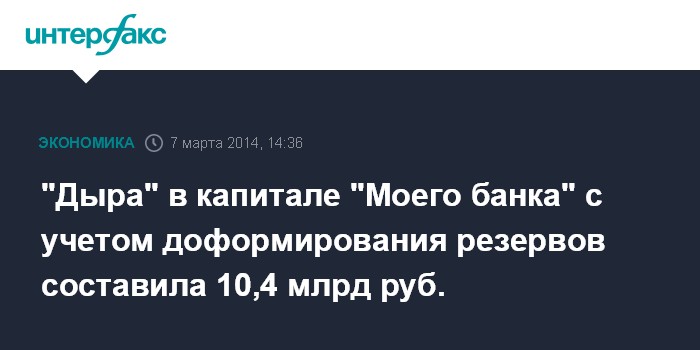 "Дыра" в капитале "Моего банка" с учетом доформирования резервов составила 10,4 млрд руб.