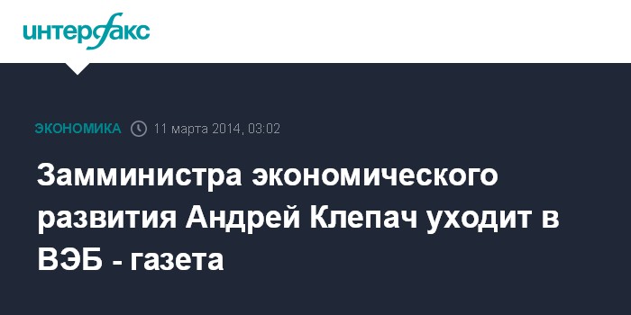 "На последнем заседании наблюдательного совета ВЭБа, состоявшемся 6 марта под председательством премьер-министра Дмитрия Медведева, было одобрено решение принять на работу в банк замглавы Минэкономики Андрея Клепача", - пишет издание.
