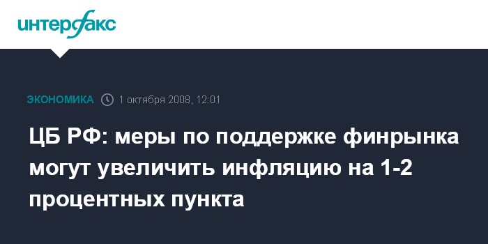 Москва. 1 октября. INTERFAX.RU - Меры, принятые российскими властями для поддержки финансового рынка, могут увеличить инфляцию на 1-2 процентных пункта в годовой перспективе, полагает первый зампред Банка России Алексей Улюкаев.