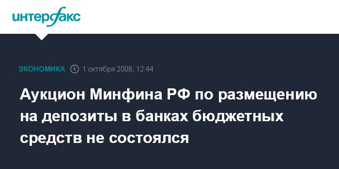 Аукцион Минфина РФ по размещению на депозиты в банках бюджетных средств не состоялся