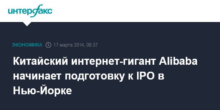 Китайский интернет-гигант Alibaba начинает подготовку к IPO в Нью-Йорке
