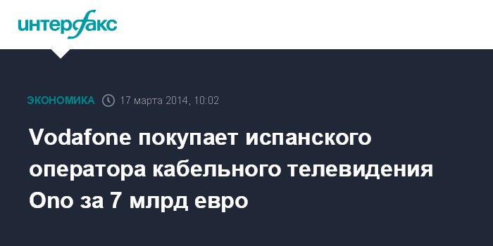 Vodafone покупает испанского оператора кабельного телевидения Ono за 7 млрд евро