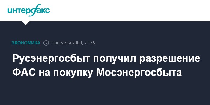 Русэнергосбыт получил разрешение ФАС на покупку Мосэнергосбыта