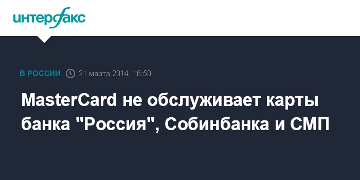 MasterCard не обслуживает карты банка "Россия", Собинбанка и СМП