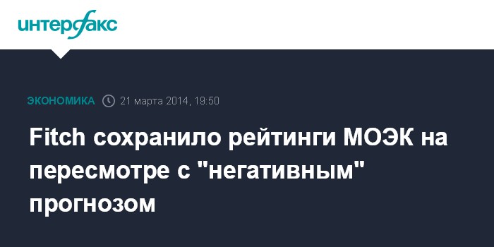 Лондон. 21 марта. INTERFAX.RU - Международное рейтинговое агентство Fitch Ratings сохраняет на пересмотре с "негативным" прогнозом долгосрочные рейтинги дефолта эмитента (РДЭ) в иностранной и национальной валюте ОАО "Московская объединенная энергетическая компания" (МОЭК), находящиеся на уровне "BB+", говорится в пресс-релизе агентства.