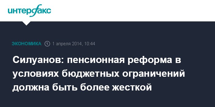 Москва. 1 апреля. INTERFAX.RU - Реформа российской пенсионной системы в условиях бюджетных ограничений на фоне стагнации в экономике должна быть более жесткой, считает министр финансов Антон Силуанов.