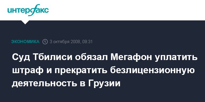 Суд Тбилиси обязал Мегафон уплатить штраф и прекратить безлицензионную деятельность в Грузии
