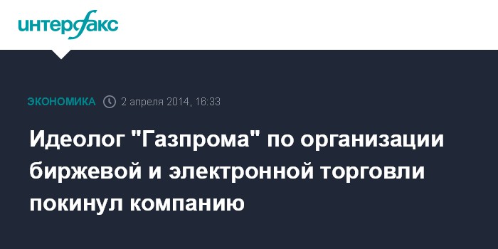 Идеолог "Газпрома" по организации биржевой и электронной торговли покинул компанию