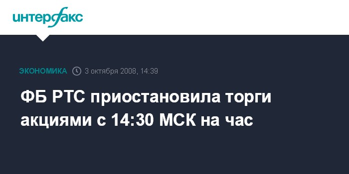 ФБ РТС приостановила торги акциями с 14:30 МСК на час