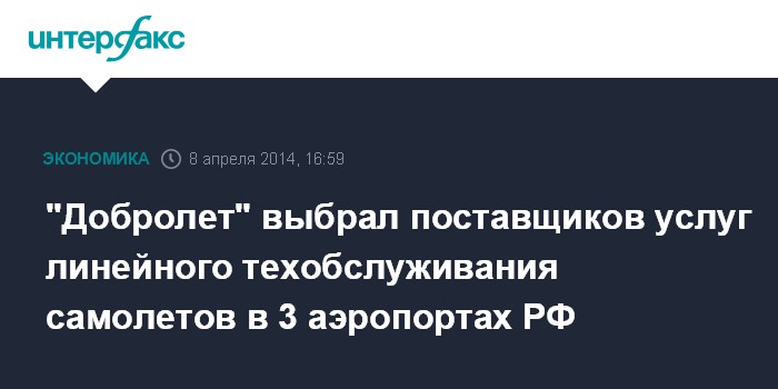 Москва. 8 апреля. INTERFAX.RU - ООО "Добролет" выбрало поставщиков услуг линейного техобслуживания самолетов Boeing 737-800 в 3 аэропортах РФ, говорится на сайте госзакупок.