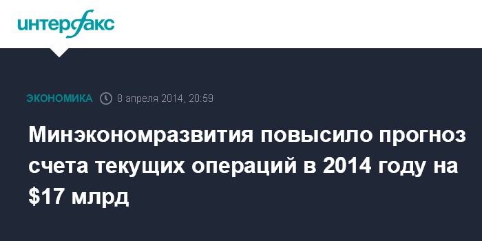 Минэкономразвития повысило прогноз счета текущих операций в 2014 году на $17 млрд
