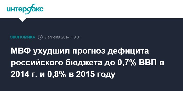 МВФ ухудшил прогноз дефицита российского бюджета до 0,7% ВВП в 2014 г. и 0,8% в 2015 году