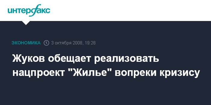 Москва. 3 октября. INTERFAX.RU - Финансовый кризис не приведет к сворачиванию проектов, запланированных в рамках национального проекта "Доступное и комфортное жилье - гражданам России", сообщил журналистам заместитель председателя правительства РФ Александр Жуков в пятницу.