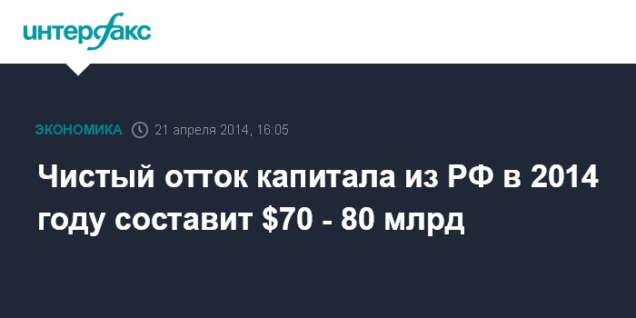 Чистый отток капитала из РФ в 2014 году составит $70 - 80 млрд