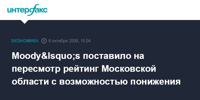 Москва. 6 октября. INTERFAX.RU - Международное рейтинговое агентство Moody‘s поставило на пересмотр с возможностью понижения рейтинг Московской области по долговым обязательствам в иностранной и национальной валюте на уровне Ва2, говорится в пресс-релизе агентства.