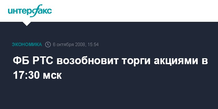ФБ РТС возобновит торги акциями в 17:30 мск