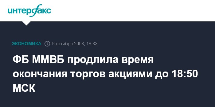 ФБ ММВБ продлила время окончания торгов акциями до 18:50 МСК