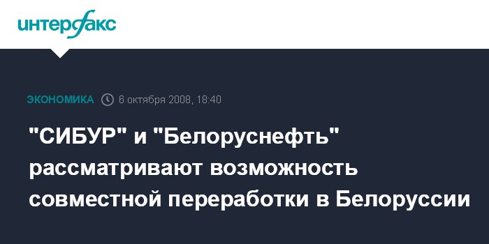 "СИБУР" и "Белоруснефть" рассматривают возможность совместной переработки в Белоруссии