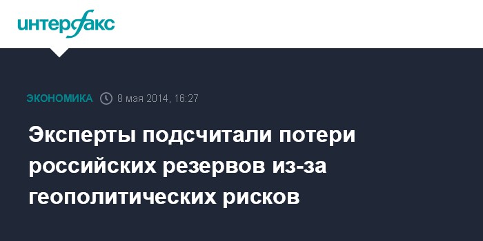 Падение международных резервов является следствием значительно давления на рубль, вынудившего ЦБ РФ в предшествующие месяцы активно продавать валюту, компенсируя отток капитала, считают эксперты "Интерфакса". Они напоминают, что по итогам первых четырех месяцев доллар и евро выросли к рублю примерно на 9%Россия с января потеряла $40 млрд резервов из-за геополитических рисков, ключевым фактором снижения стал отток капитала, активизировавшийся в связи с геополитическим кризисом на Украине.