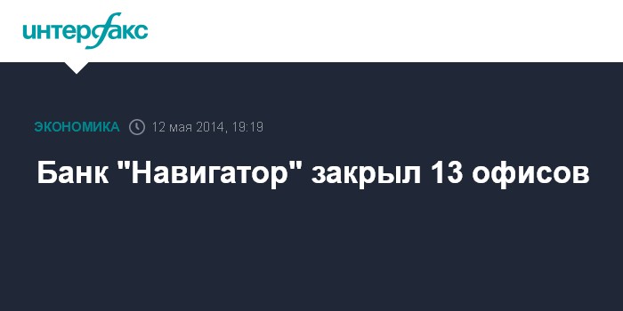 Москва. 12 мая. INTERFAX.RU - Московский банк "Навигатор", в начале мая приостановивший операции физлиц, закрыл 13 офисов, говорится в сообщении кредитной организации.