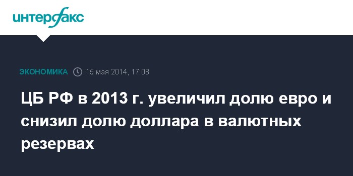 ЦБ РФ в 2013 г. увеличил долю евро и снизил долю доллара в валютных резервах
