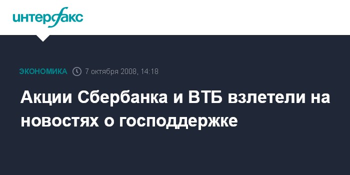 Акции Сбербанка и ВТБ взлетели на новостях о господдержке