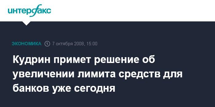 Кудрин примет решение об увеличении лимита средств для банков уже сегодня