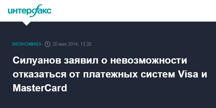 Москва. 20 мая. INTERFAX.RU - Платежные системы Visa и MasterCard будут работать и дальше в России, заявил министр финансов РФ Антон Силуанов.