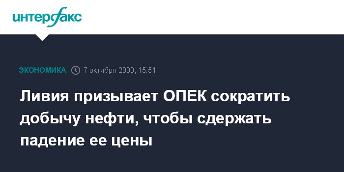 Москва. 7 октября. INTERFAX.RU - Ливия призывает страны-члены ОПЕК сократить добычу нефти, чтобы сдержать падение ее цены.