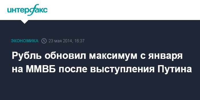 Эксперты объясняют усиление роста рубля реакцией валютного рынка на выступление Путина на ПМЭФ. Президент заявил, что Москва будет готова работать с органами власти, сформированными после выборов президента на Украине. Он убежден, что санкции, введенные странами Запада в связи с ситуацией на Украине, не нанесут системного вреда экономике России. После урегулирования ситуации на Украине Москве и Вашингтону удастся нормализовать отношения, отметил он.