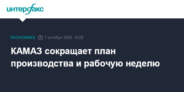 Москва. 7 октября. INTERFAX.RU - ОАО "КАМАЗ" (РТС: KMAZ) сокращает план производства на 2008 г. на 20%, сообщили "Интерфаксу" источники в компании.