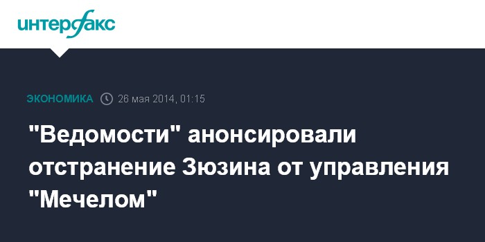 "Ведомости" анонсировали отстранение Зюзина от управления "Мечелом"