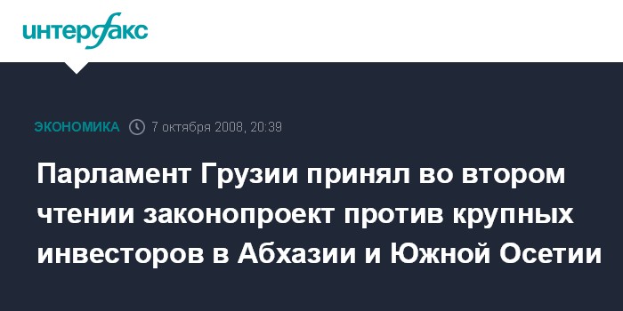 Парламент Грузии принял во втором чтении законопроект против крупных инвесторов в Абхазии и Южной Осетии