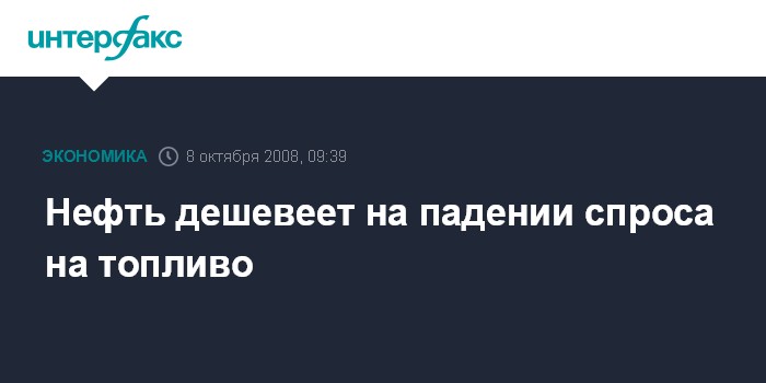 Москва. 8 октября. INTERFAX.RU - Нефть дешевеет на падении спроса на топливо в развитых странах, сообщило агентство Bloomberg.