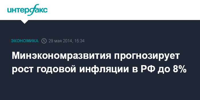 Минэкономразвития прогнозирует рост годовой инфляции в РФ до 8%