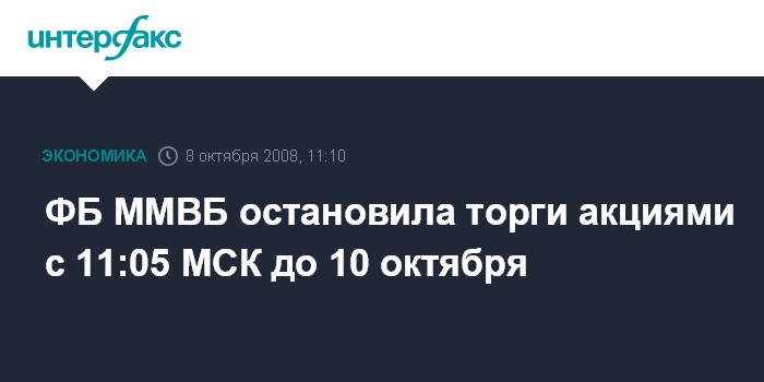 ФБ ММВБ остановила торги акциями с 11:05 МСК до 10 октября