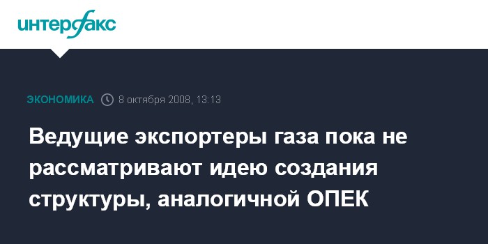 Ведущие экспортеры газа пока не рассматривают идею создания структуры, аналогичной ОПЕК