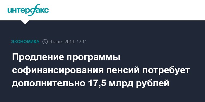 Продление программы софинансирования пенсий потребует дополнительно 17,5 млрд рублей