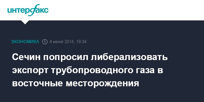 Сечин попросил либерализовать экспорт трубопроводного газа в восточные месторождения