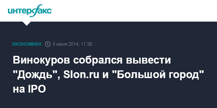 Винокуров собрался вывести "Дождь", Slon.ru и "Большой город" на IPO