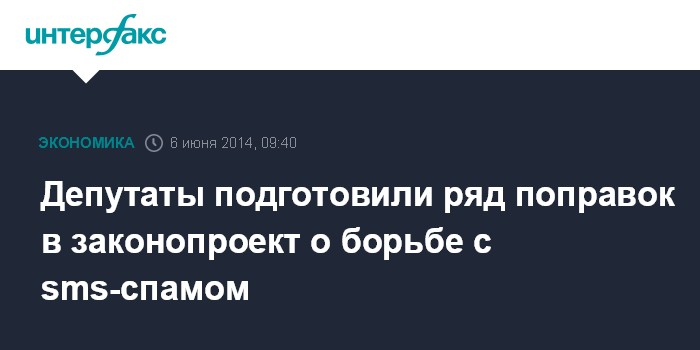 Москва. 6 июня. INTERFAX.RU - Депутаты Госдумы России подготовили ряд поправок в законопроект о борьбе с sms-спамом, принятый в первом чтении в мае текущего года, говорится в сообщении пресс-службы зампреда Госдумы, одного из авторов документа Сергея Железняка.