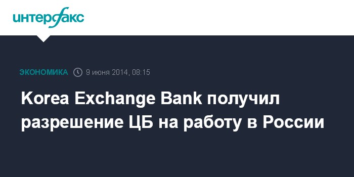 Korea Exchange Bank получил разрешение ЦБ на работу в России