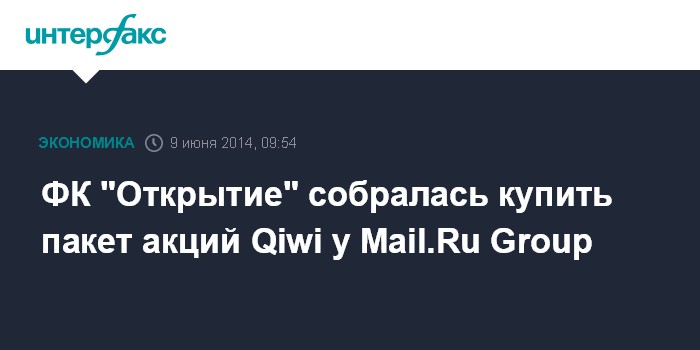 ФК "Открытие" собралась купить пакет акций Qiwi у Mail.Ru Group