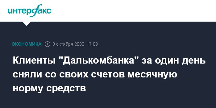 Клиенты "Далькомбанка" за один день сняли со своих счетов месячную норму средств